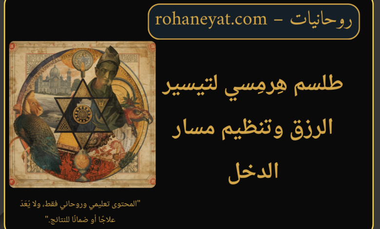 أكمل القراءة »طلسم هِرمِسي مخصّص لتيسير الرزق مقالة تعليمية حول استعمال الرموز الهرمسية في تنظيم مسار الرزق مقدّمة يُعدّ الرزق من أكثر المسائل حضورًا في حياة الإنسان، لا من حيث المال وحده، بل من حيث انتظام الأسباب، واستقرار الدخل، وسلاسة الأبواب، وقدرة…