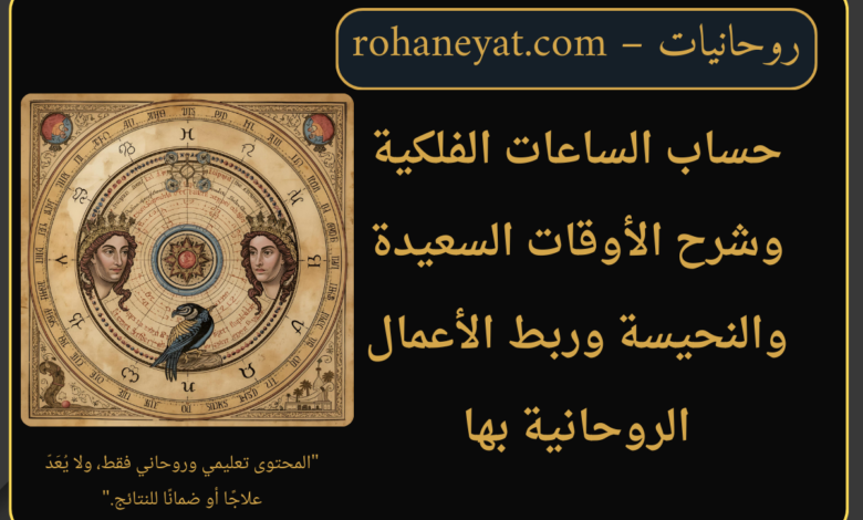 أكمل القراءة »حساب الساعات الفلكية وشرح الأوقات السعيدة والنحيسة وربط الأعمال الروحانية بها موقع روحانيات – بإدارة حكيم روحاني تقوم العلوم الروحانية القديمة على مبدأ الترابط بين ما يجري في العالم الأرضي وما يتحرك في عالم الأفلاك والكواكب، حيث يُنظر إلى الزمن…